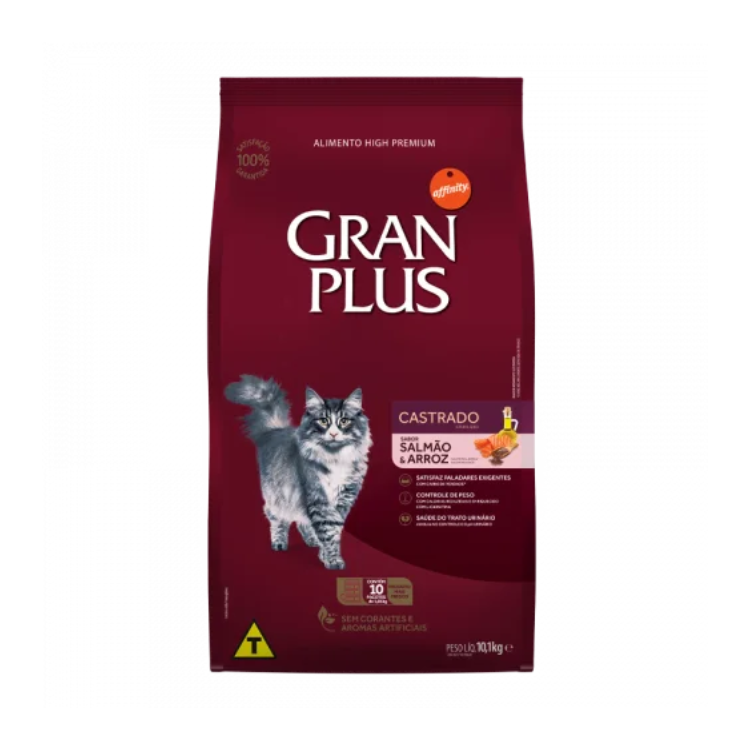 Gran Plus gato adulto castrado calmon y arroz es una línea completa de alimentos súper premium. Su fórmula exclusiva fue especialmente desarrollada para mantener la salud de las mascotas. Hecho con ingredientes nobles, cocidos al vapor y sin colorantes ni aromas artificiales. Un alimento de alta calidad, producido con ingredientes finos y funcionales que proporciona una experiencia irresistible para su gatito mientras le ayuda a su crecimiento y desarrollo.