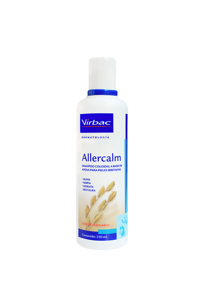 Shampoo a base de avena y glicerina, proporciona alivio al prurito. Garantiza un buen estado del animal manteniendo la piel siempre saludable. Su composición contiene agentes que promueven nutrición intensiva y actúan como una película protectora que mantiene el equilibrio cutáneo. Allercalm entrega brillo al pelaje y suavidad a la piel. Su composición permite el uso frecuente sin alterar la integridad de la piel.