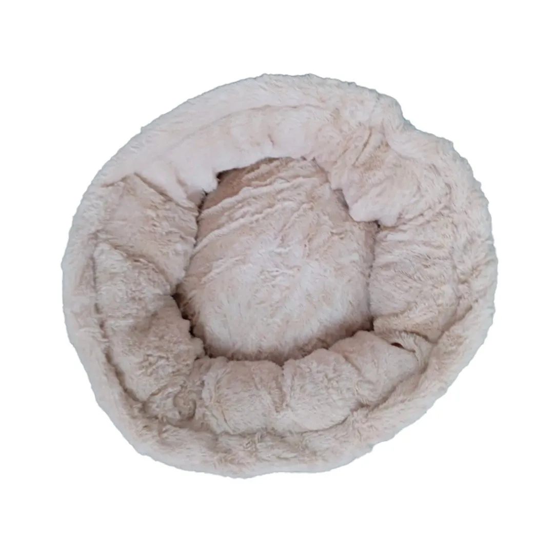Cama para mascota circular muy acogedora, con un forro interior hecho de felpa aterciopelada súper suave, seguramente le dará a su mascota el lugar para dormir más acogedor posible.