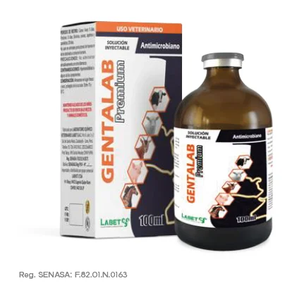 Gentalab Premium es un antibiótico de uso veterinario formulado a base de gentamicina, un potente agente antimicrobiano ampliamente utilizado en medicina veterinaria. Este producto destaca por su amplio espectro de acción, ideal para tratar infecciones bacterianas tanto en animales de compañía como en especies mayores.