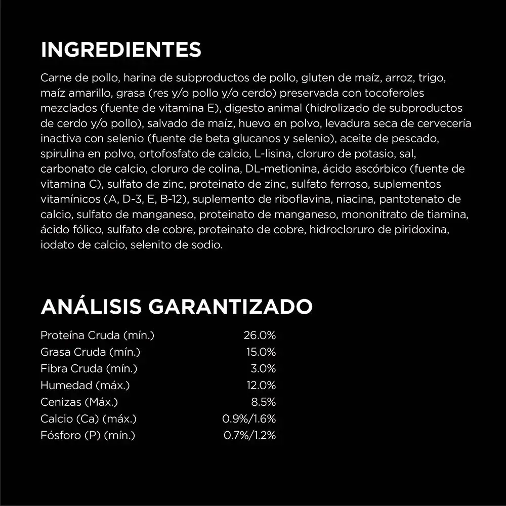 Con carne de pollo como ingrediente #1, fuente de proteína de alto valor biológico y elevada digestibilidad que entrega un óptimo nivel de nutrientes de manera eficaz.