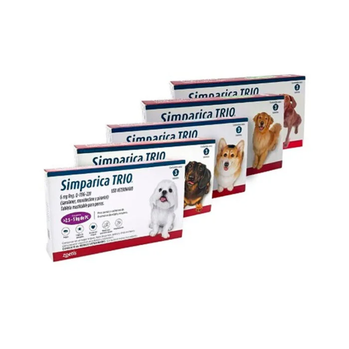Simparica Trio está indicado para perros desde las 8 semanas de edad y con un peso mínimo de 1.25 kg. Está disponible en diferentes presentaciones según el peso de tu mascota, lo que asegura una dosificación precisa y segura.
